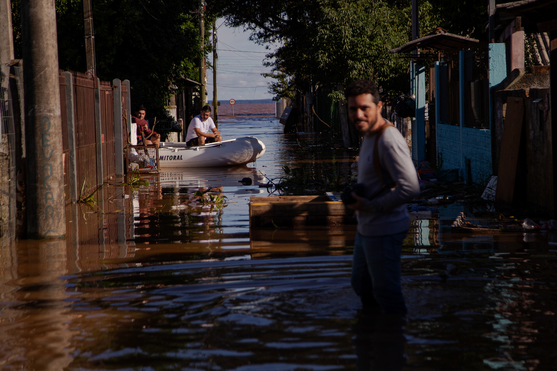 As imagens apresentadas fazem parte de “Ecos da Terra”, um projeto-guarda-chuva autoral e em construção, de longa duração, que documenta, em imagens e narrativas, a crise climática e humanitária no Rio Grande do Sul, em especial a catástrofe de maio de 2024 e seus impactos permanentes.