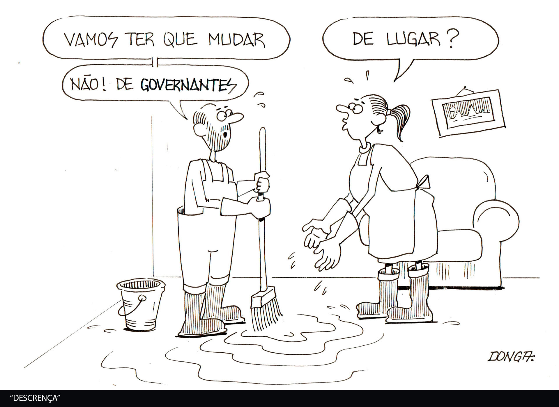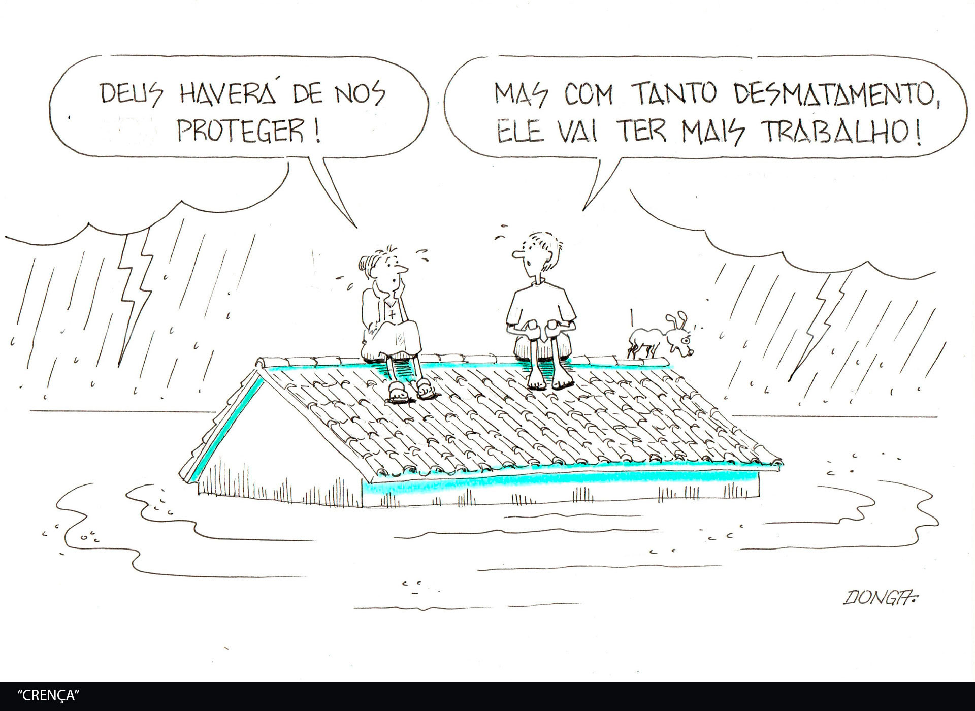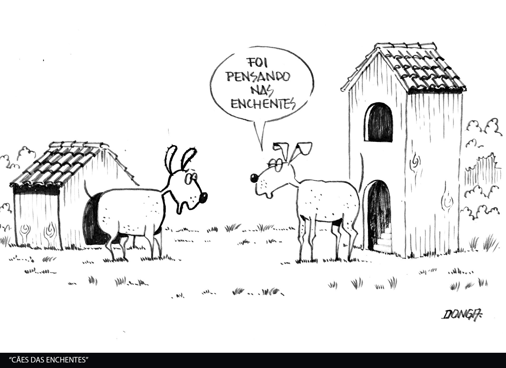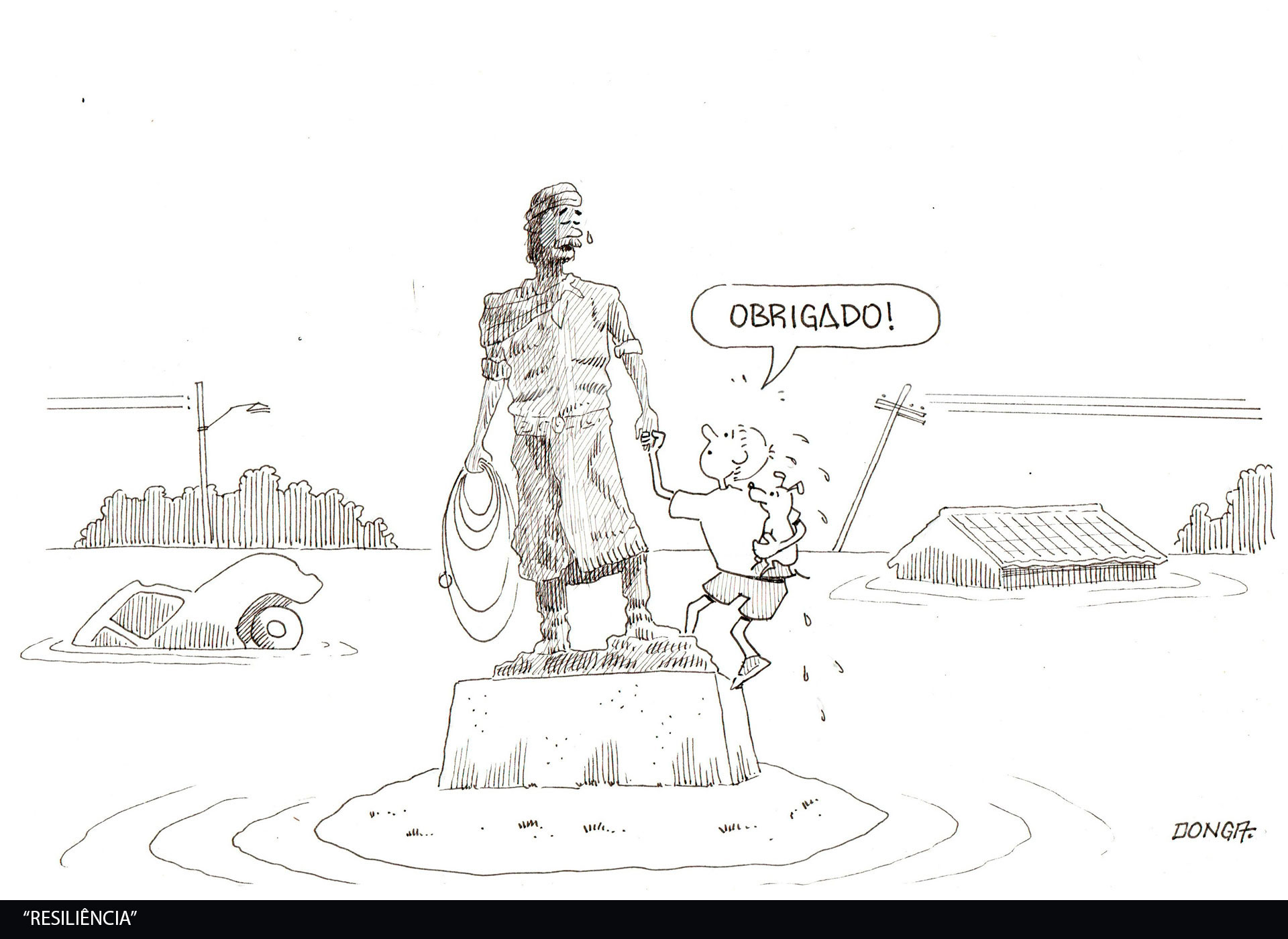 A série de charges produzidas pelo cartunista Donga a partir dos eventos que marcaram as enchentes ocorridas no Rio Grande do Sul, em março de 2024, é um conjunto de obras que constitui um registro gráfico de um dos períodos mais desafiadores da história recente do estado, oferecendo uma leitura crítica, reflexiva e, ao mesmo tempo, sensível sobre o impacto social e ambiental desta tragédia.